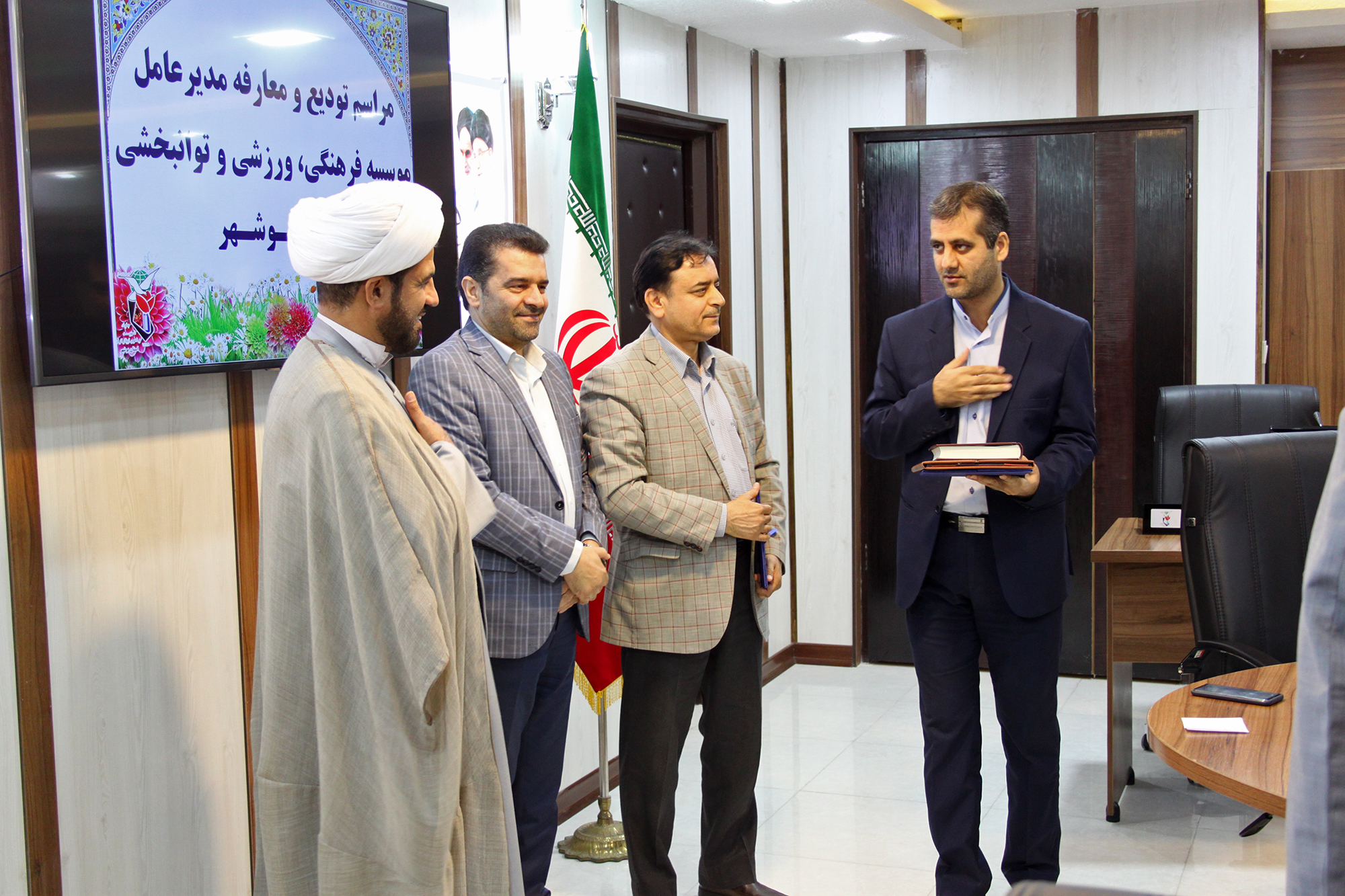 در طی سفری که مهندس پورحاج رضایی مدیرعامل موسسه به همراه میرزا مدیر کل حراست به استان بوشهر داشتند، این مراسم تودیع و معارفه انجام شد.